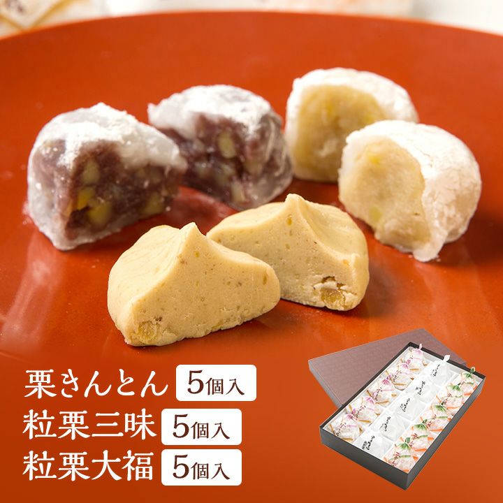 他の画像を見る 送料無料 冷凍 栗専門店の新杵堂 伝統の栗和菓子の3種類の詰め合わせ 伝統栗和菓子 15個入 栗きんとん5個+栗三昧5個+栗大福5個 5.00 (4) 価格 ¥ 5,210 税込 詳細を見る お気に入りに登録する